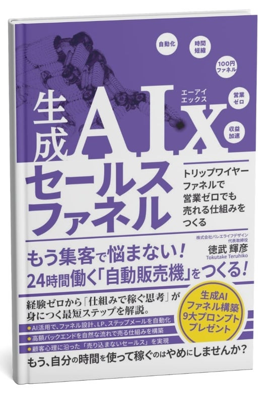 本書では、ファネルが売上につながらない原因を明らかにし、生成AIを使って100円商品から3~5万円のバックエンド商品へと自然に誘導する「トリップワイヤーファネル」を、LP・ステップメール・商品コンテンツまで含めて効率的に構築する方法を、テンプレートとプロンプト付きで実践的に解説します。