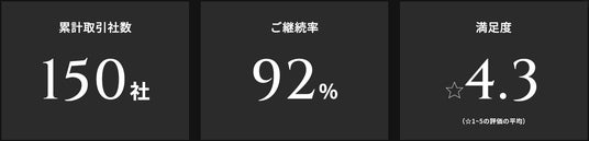 累計150社以上の会社様に、マーケティング、インサイドセールス、フィールドセールス、カスタマーサクセス、様々な領域をご支援させていただき、高い満足度と高いご継続率を誇ります。
