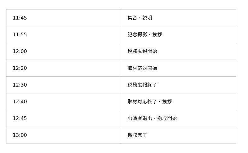 なお、11月11日(火)に、岐阜県法人会連合会(岐阜駅)、愛知県法人会連合会(名古屋駅・豊橋駅)、静岡県法人会連合会(静岡駅・熱海駅)が行う広報活動とともに、東海道税務広報の一環として実施し、TV等の各種メディアにも取り上げていただく予定です。