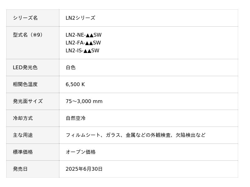 シーシーエス株式会社(本社:京都市上京区 代表取締役社長 大西浩之)は、画像処理検査で使用する、ラインスキャンカメラ(※1)用照明「LN2シリーズ」を、2025年6月30日から発売いたします。