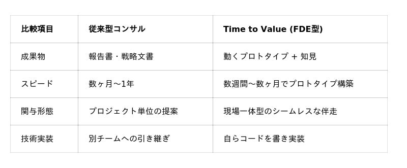サービス概要・特徴本サービスでは、米Palantir社等が採用する「FDE」モデルを日本のコンサルティング領域に最適化して導入しました。