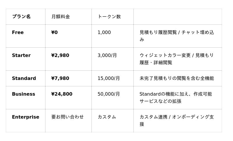 金額内訳・合計金額・想定期間まで含む構造化された見積もりを自動で生成するクラウドサービスです。