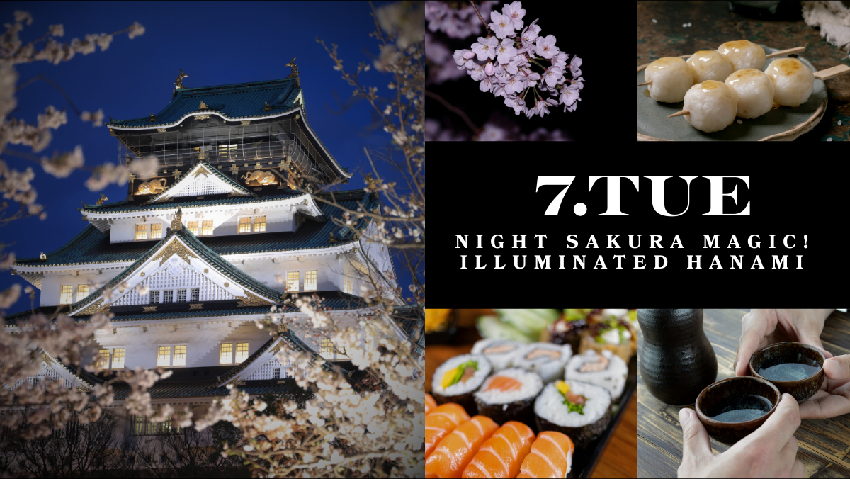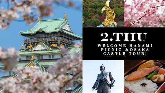 【交流】大阪城・桜の下でウェルカムお花見&夜桜マジック(4/2・4/7)晩年に1,300人を集めた歴史的ビッグイベント「醍醐の花見」を主催するなど、秀吉は桜の宴を「人と人を繋ぐ最大のネットワーキングの場」として活用した天才でした。本プログラムではその手法を現代にアップデート。秀吉が愛した桜の下で、お酒や食事を共にしながら国境も肩書きも越えた深い交流を生み出し、世界中のデジタルノマドと地元コミュニティを「生涯の仲間」へと変える熱狂の宴を開催します。