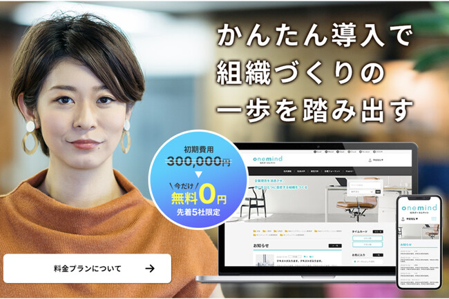 『onemind』のwebサイトの問い合わせフォームからのお申込みのお客様に向けて、先着5社限定で『onemind』導入時にかかる初期費用 300,000円 が無料になるキャンペーンを実施いたします。