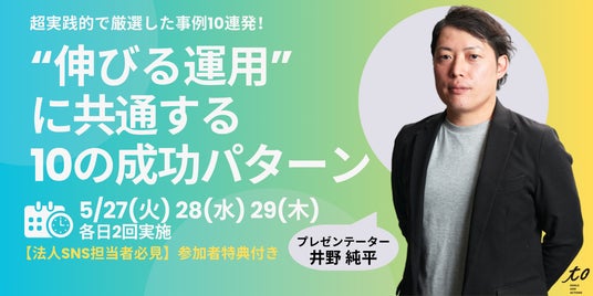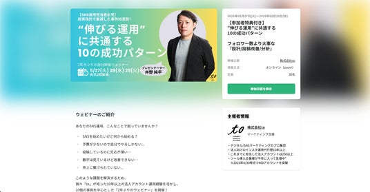 法人向けのマーケティング分析支援ツール「GENba(ゲンバ)」を提供する株式会社to(本社:東京都目黒区、代表取締役:濱野 和城)は、2025年5月27日(火)~29日(木)の3日間で「“伸びる運用”に共通する10の成功パターン」と題した全6回の無料ウェビナーを開催いたします。