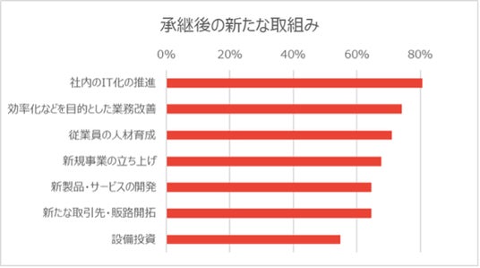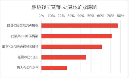 「従業員との関係構築」(71%)を挙げる人が多く、社内の足場固めに課題感を認識して進めていった姿が見て取れます。