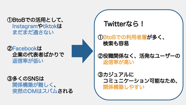 ご支援先では、アポイント数・受注数が激増しております。イーロン・マスク氏の影響もあることで、Twitterはユーザー数が増加傾向にあり、Twitter活用した見込み客との接点はBtoB企業でも、日々重要視されています。