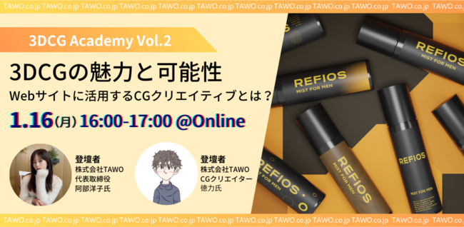 3DCGの制作会社、株式会社TAWOはこの度CGの魅力をより多くの方に知って頂くため、2度目のオンラインイベントを開催致します。
