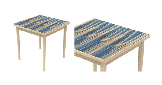針葉樹は、日本特有の風合いを持ち、古くから神社仏閣や多くの建築物に使用されてきました。木の文化を今日に伝えるだけでなく、未来に向けてさらに発展が期待されています。「IZUMO テーブル」の天板は、自然な木目を生かし、木材の内部まで色が浸透することで、木の素材感が残る新しい素材から生まれたオリジナルプロダクトです。天板のカラーリングは、空間の印象を一変させるほどのオリジナリティを発揮し、木目を生かした色合いでインテリアの演出の幅を広げます。
