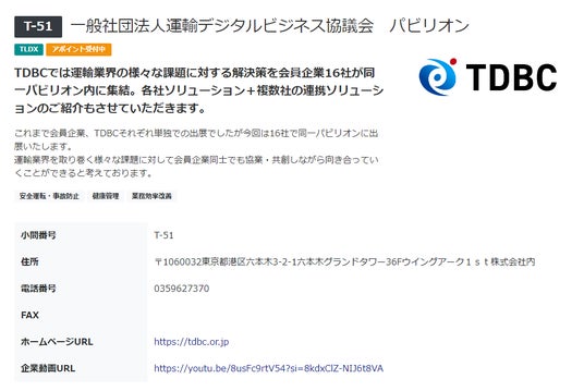 ・運輸安全・物流DX EXPO 2024 TDBCブースの設置名称:運輸安全・物流DX EXPO 2024