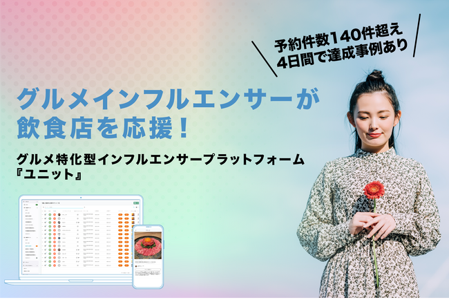 株式会社UNIT(本社所在地:東京都渋谷区、代表取締役 岡野 剛士)が運営する、グルメ特化型インフルエンサープラットフォーム『ユニット』は、2024年3月時点で、インフルエンサー登録者数が1万人を突破したことをお知らせいたします。