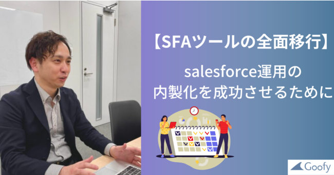 GoofyではそんなSFA/CRMツールの導入を伴走型で成功に導く、SFA/CRMの運用定着支援サービス「SFA Hands-on」を提供しています。会社名 :株式会社Goofy(グーフィー)所在地 :〒106-0032 東京都港区六本木7-21-24THE MODULE roppongi 405設 立 :2019年11月13日資本金 :8,600,000円代表者 :代表取締役 山本 恭平
