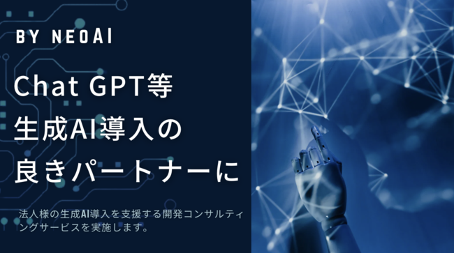 東京大学発スタートアップのneoAI(本社:東京都文京区,代表取締役:千葉駿介)は、企業の生成AI導入を支援するサービスをスタートします。