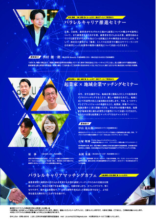 また実際に、プラットフォームにてマッチングする起業家企業と地域企業にご登壇いただき、互いが手を取り合うことで生まれる新しい価値、そして関係人口として起業家が地域にどのような価値をもたらすかについてお話いただきます。