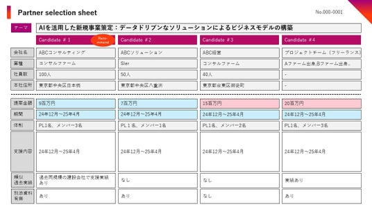 パートナーセレクションシートのサンプル