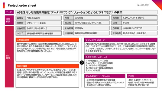 プロジェクトオーダーシートのサンプル