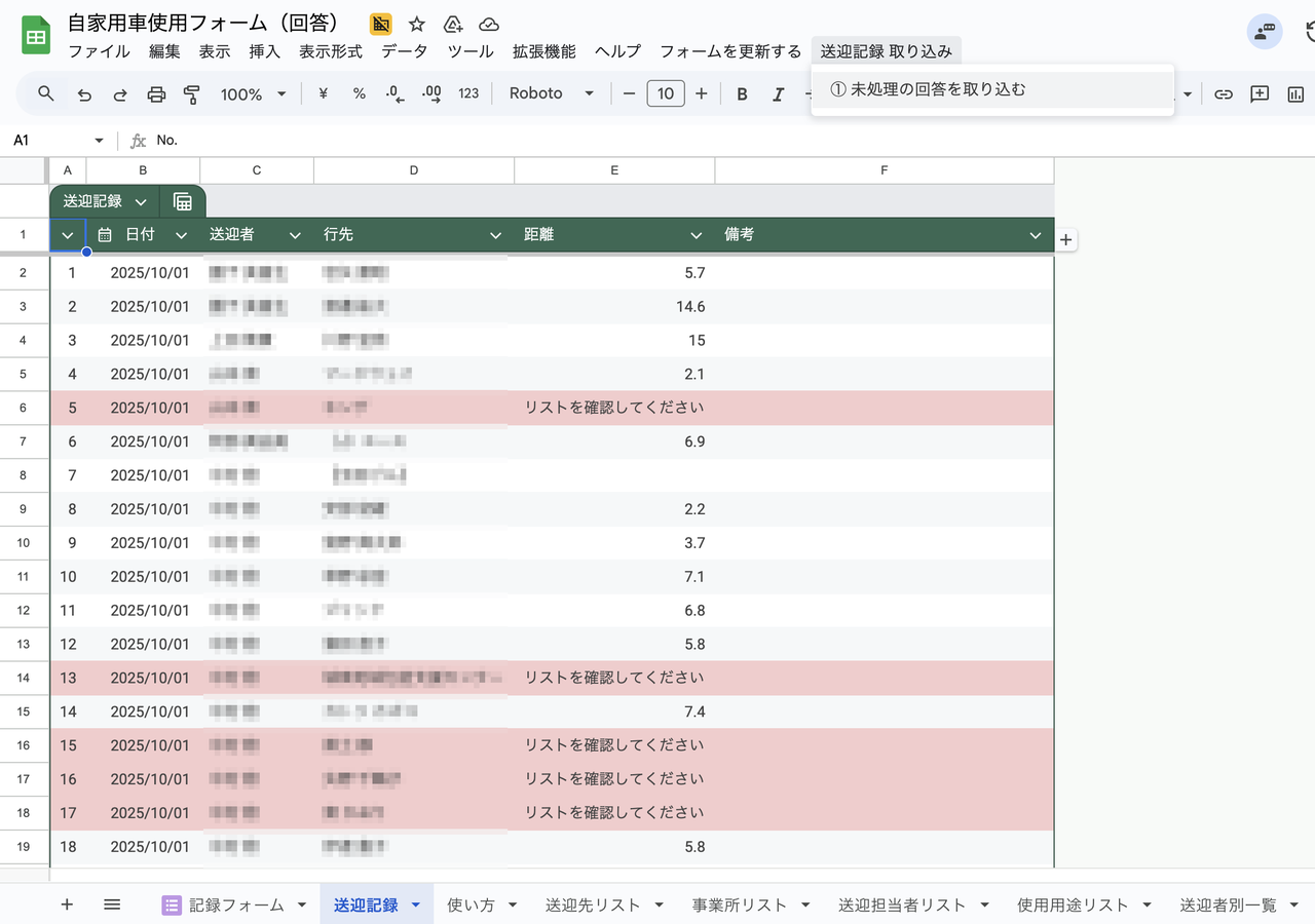 ・送迎担当からの報告をもとに、管理側が「誰が・どこへ・どれだけの距離か」を