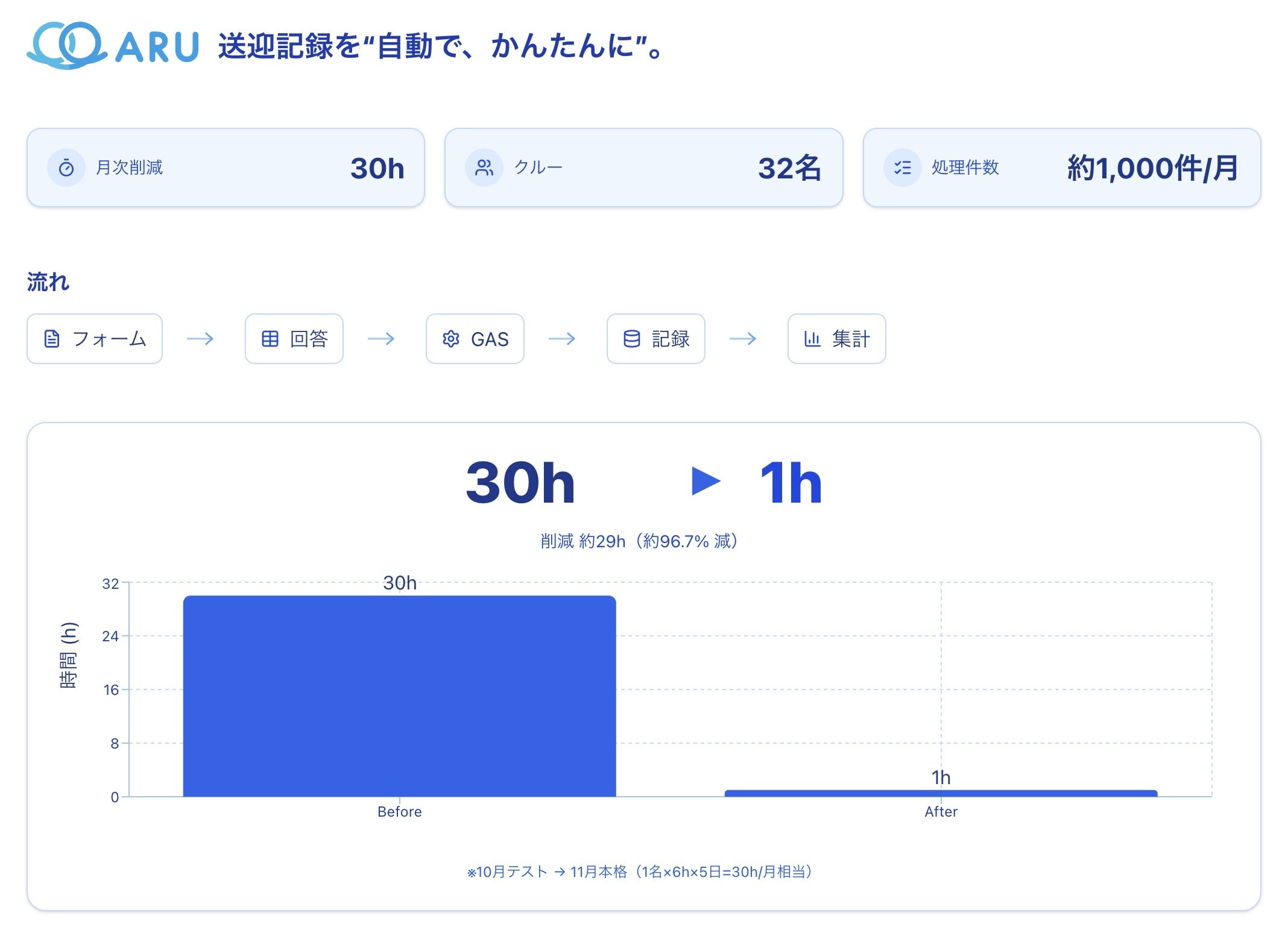 時間削減:月30時間 → 約1時間へ