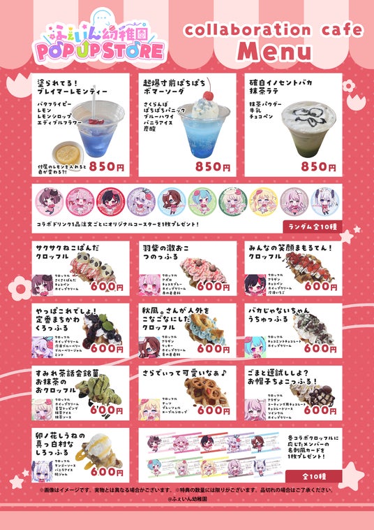 POP UP STORE では珍しく、店内にてメンバーがそれぞれ考案した「オリジナルドリンク」や「デザート」も注文することが可能です。