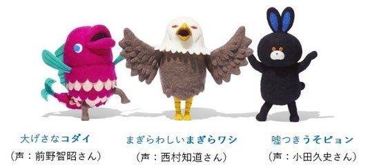 3匹は前回同様、アニメーション作家・伊藤有壱さんによるフェルト人形のコマ撮りアニメで表現し、声は小田久史さん、前野智昭さん、西村知道さん、ナレーションは相田さやかさんが引き続き担当。前作の世界観を引き継いでいます。