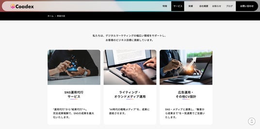 Coadexの3つの事業についてそれぞれ詳細ページをご用意しました