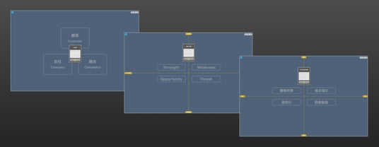 ビジネスコンサルティングで定番のワークフレーム、3C分析~SWOT分析~クロスSWOT分析をボタン1つで実行します。直近の生成AIの能力をもってすれば、こうした「型」が定まっているフローに関しては驚異的なリザルトを提示します。