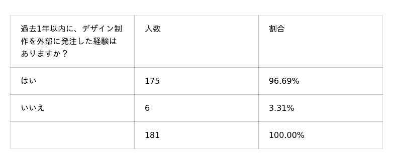 【質問1.】過去1年以内に、デザイン制作を外部に発注した経験はありますか?【 選択肢 】