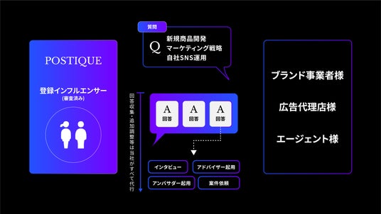 POSTIQUE INSIGHTは、生活者としての視点に加え、SNSにおける発信・共感形成の知見を備えたインフルエンサーから、商品開発・ブランド/SNS改善の意思決定に資するインサイトを収集できる新たな手法として、複数の事業者様にご利用を開始いただいております。
