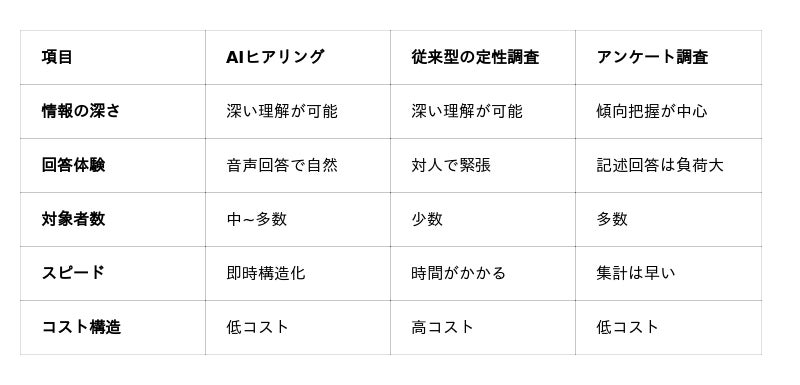 人手では時間とコストの制約から実施が難しかった大規模な定性ヒアリングを、