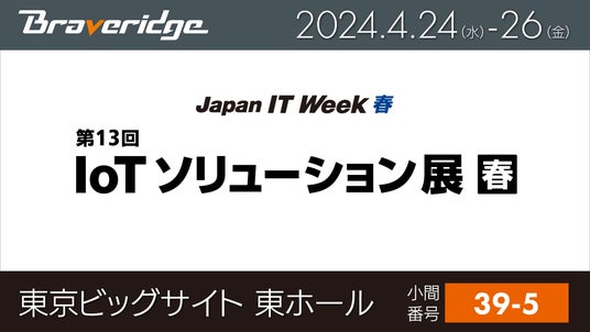 株式会社Braveridge(ブレイブリッジ、本社:福岡県福岡市西区、代表取締役社長 小橋泰成、以下Braveridge)は、2024年4月24日(水)~26日(金)に東京ビッグサイトにて開催される『第13回 IoTソリューション展 春』に出展いたします。