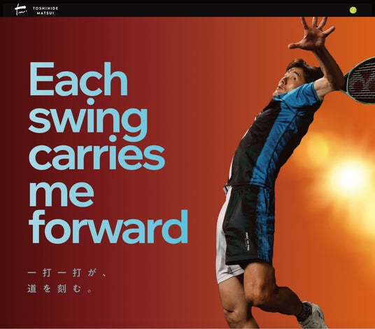 サイト全体のアートディレクションには、松井選手のプレースタイルやメンタリティを象徴する“太陽”のモチーフを採用。朝、昼、夕と日差しの照りつけるコートのなかで挑戦を続けるアスリートとしての姿勢を表現しています。