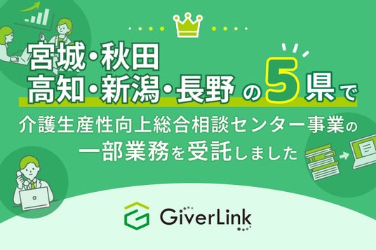 株式会社Giver Link(本社:宮城県仙台市、代表取締役:早坂祐哉)は、この度、介護生産性向上総合相談センターの一部業務を宮城県、秋田県、高知県、新潟県、長野県の5県で受託いたしましたことをお知らせします。