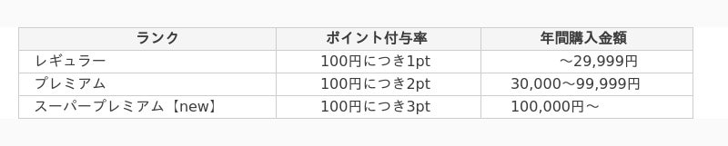 年間購入金額に応じて3つの会員ランク(レギュラー、プレミアム、スーパープレミアム)をご用意!