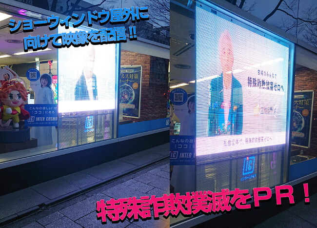同社は昨年、自社ショールームの屋外向けLEDウィンドウサイネージにて、特殊詐欺被害対策のPR映像を配信し、地域住民に向けて特殊詐欺の手口や恐ろしさを映像コンテンツ配信を通じて啓蒙活動を実施した。今回の授与は本取組にて宮城県警に協力したことを評価されたものです。