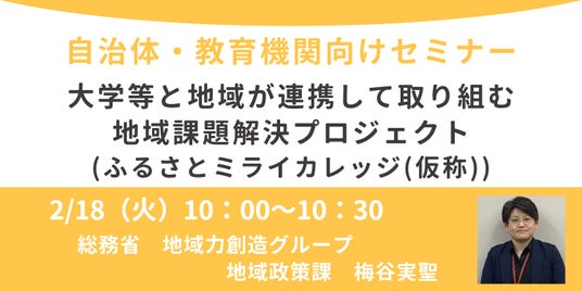 企業版ふるさと納税を活用した地域課題解決プラットフォーム「river(リバー)」を運営する株式会社カルティブ(本社:神奈川県横浜市、代表取締役:池田 清)は各省庁の出している補助金・交付金の活用方法を自治体様・企業様向けに伝える「地方創生制度活用シリーズセミナー」として、2025年2月18日(火)に総務省担当者によるオンラインセミナー「大学等と地域が連携して取り組む地域課題解決プロジェクト(ふるさとミライカレッジ)」を開催します。本セミナーでは、大学等と地域が連携して取り組む地域課題解決プロジェクト(ふるさとミライカレッジ)について詳しくご説明いたします。
