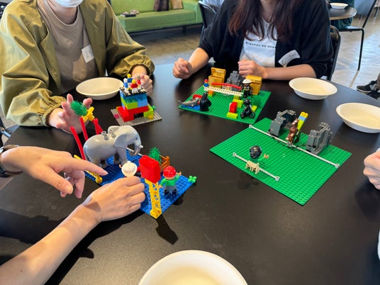 (※)レゴ(R)シリアスプレイ(R)メソッドは、レゴブロックを使ったビジネス課題解決とチームビルディング手法です。参加者はレゴモデルを作り、アイデアを共有して問題解決や新しい視点を得ます。これにより、結束力とコミュニケーションが強化され、複雑な問題の新しい解決策が見つかります。全員が平等に意見を出し合うことで、深い洞察が得られます。