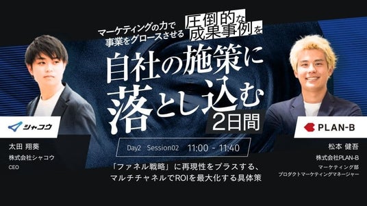 マーケティングの力で事業をグロースさせる「圧倒的な成果事例」を自社の施策に落とし込む- 株式会社 シャコウ主催、2024年10月29日(火)、2024年10月30日(水)に開催