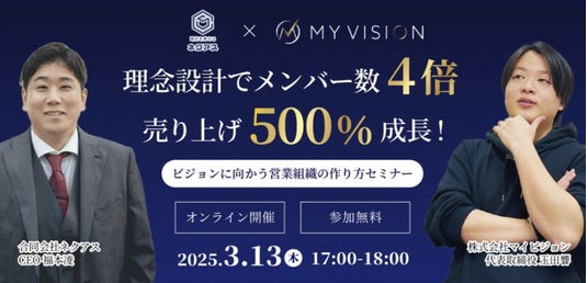 タイトル:理念設計でメンバー数4倍!売上500%成長! ビジョンに向かう営業組織の作り方セミナー「社員のエンゲージメントを高めて売上利益を上げたい」