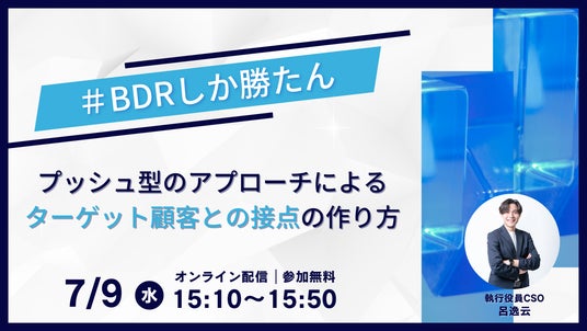 マーケティング施策としてのBDRを提供し、商談設置~受注まで包括的に営業課題を解決する株式会社SpaceJack(本社:東京都渋谷区、代表取締役社長:三浦航太)は、2025年7月9日(水)に無料オンラインセミナー「#BDRしか勝たん ~プッシュ型のアプローチによるターゲット顧客との接点の作り方~」を開催することをお知らせいたします。
