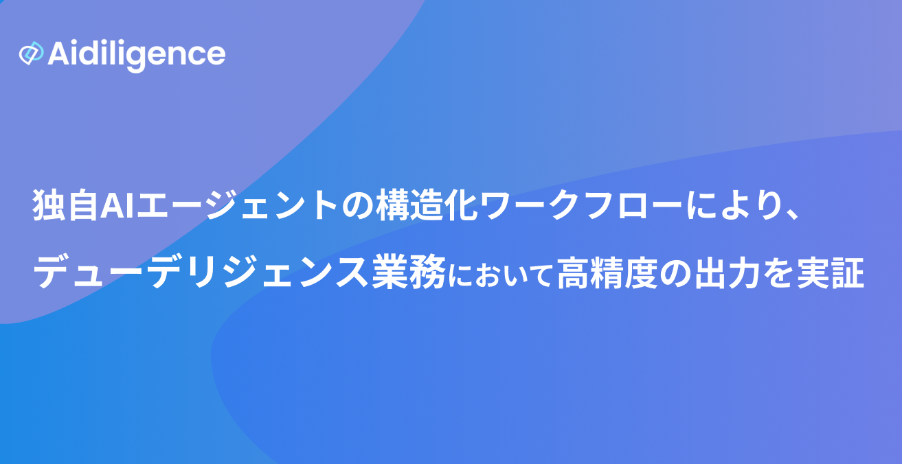 株式会社Herix(本社:東京都中央区、代表取締役CEO:中村丞、以下「Herix」)は、M&A・投資向けデューデリジェンス支援プラットフォーム「Aidiligence」に、"専門家の調査プロセス"を工程ごとに分担し、複数のAIエージェントが連携して統合できる構造化ワークフローを実装し、汎用LLMを超える再現精度を実現しました。