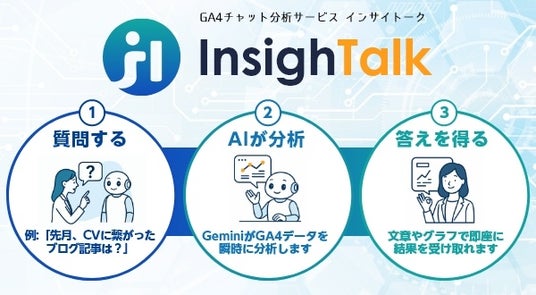 アド・セイル株式会社が9月にリリースしたサービス、「GA4 Chat Analyst」は、機能をアップデートし、「InsighTalk(インサイトーク)」として、本格的にサービス提供を開始することをお知らせいたします。