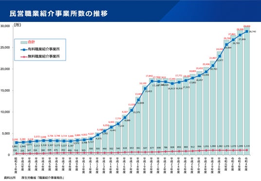 出典:民営職業紹介事業所数の推移(厚生労働省),