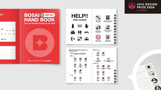 企業向けにアートディレクションやブランディングデザインを行うBalloon 株式会社(大阪府大阪市 代表:志水 良 以下、Balloon)は、BUD(BOSAI Universal Design 以下、BUD)のブランディング及びデザインを手がけ、「Asia Design Prize 2026 Communication部門」にてWinnerを受賞しました。Balloon社は「BUD」の共同設立者として、シンボルマークのデザインや、多言語対応防災手帳のデザイン、イベントの企画運営・実行指揮など、多岐にわたるアートディレクションを担いました。Balloonがデザインした「防災ハンドブック」は、言語を問わず誰にでもわかるピクトグラムを用い、文字情報をできる限り無くすアプローチが取られています。EXPO 2025 大阪・関西万博の救護・防災スタッフに配布されるなど、プロジェクトの大きな成果となっています。