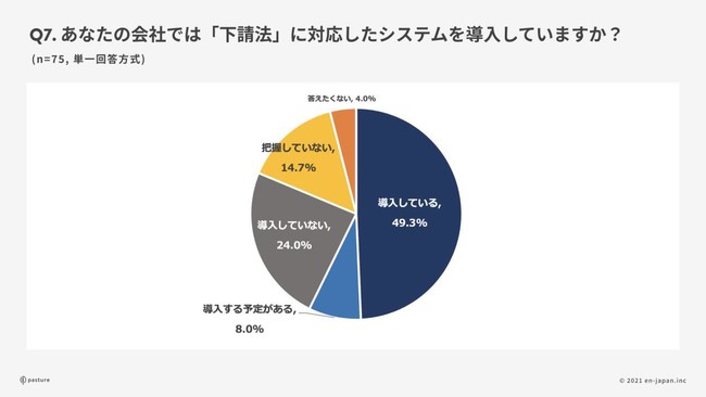 Q7. あなたの会社では、「下請法」に対応したシステムを導入していますか?