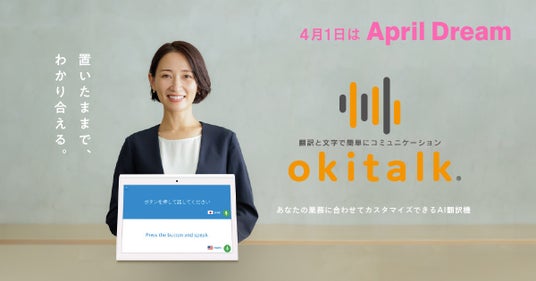 当社は、4月1日を夢を発信する日にしようとする April Dream に賛同しています。本プレスリリースは、「置き型AI翻訳・筆談機 okitalk(オキトーク)」の夢です。