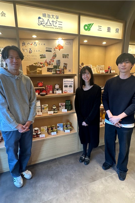 明治大学政治経済学部奥山ゼミナールの学生が「食べることは知ることだ」をテーマに全国のごはんのおともの選定と魅力発信を行うブースを立ち上げ。今後は、特定の地域を特集したイベント等も実施予定。地域経済活性化を目的とした産学連携プロジェクトとして、地域の魅力価値向上つなげていく。
