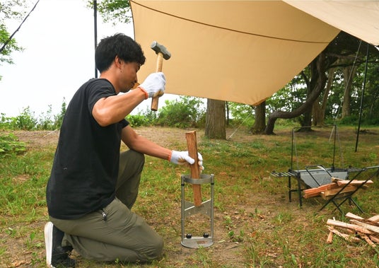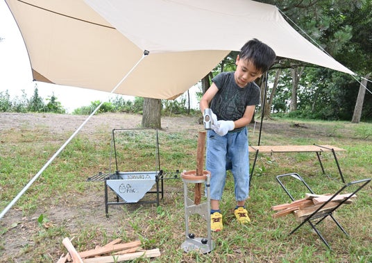 「キャンプでお子さまが安全にお手伝いできない」という要望から生まれた、1台で3役(お子さまが1人で薪割りできる。親子で薪割りできる。大人の方でも快適に薪割りができる。)Makuakeにて購入可能【2024/9/18~10/28まで】