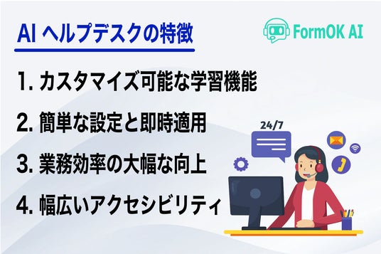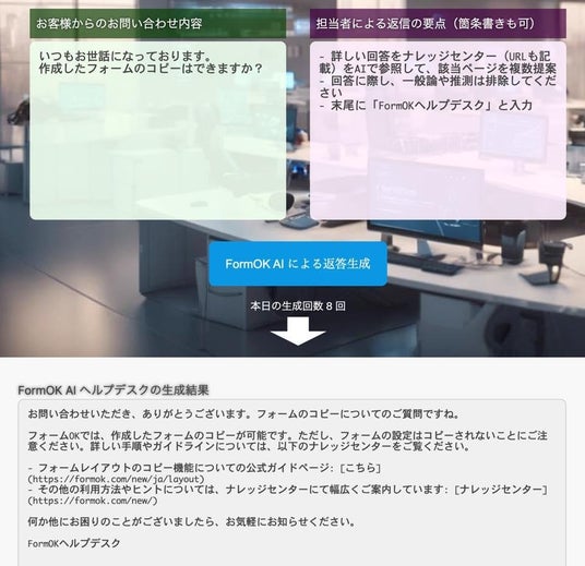 これらの特徴により、FormOK AIヘルプデスクは顧客の課題解決に向けた理想的な回答を短時間で生成し、効率的かつ高品質な顧客サポートを実現します。
