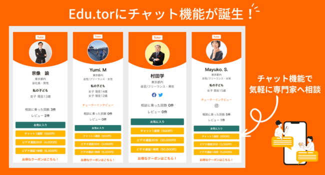 グローバル教育、学校情報を軸とした事業を展開する株式会社Edu.tor(岐阜県 代表取締役:坪井与枝)が提供する「Edu.tor個別相談サービス」では、グローバル教育に精通した専門家に気軽に相談できる「個別チャット機能」をリリースしました。