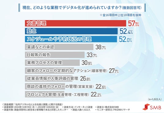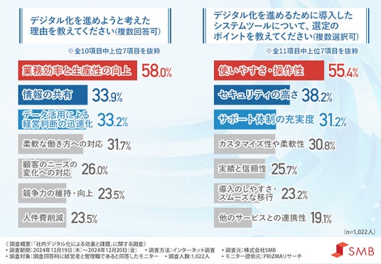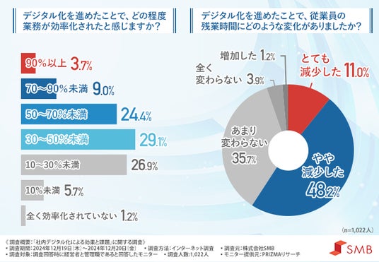 株式会社SMB(所在地:愛知県知多郡東浦町、代表取締役社長:廣瀬 修)は、経営者と管理職を対象に「社内デジタル化による効果と課題」に関する調査を行いました。